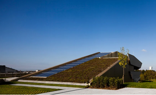 El contexto es el campus de la Universidad en San Sebastián. Se podría considerar que el edificio adopta la forma de ladera hasta cierto punto pero la transgrede al estar enterrada en esta.