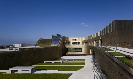 - El edificio posee forma de "U" y sus accesos se encuentran en el centro de la misma , sumado a la pendiente esto te invita a pasar al interior del edificio