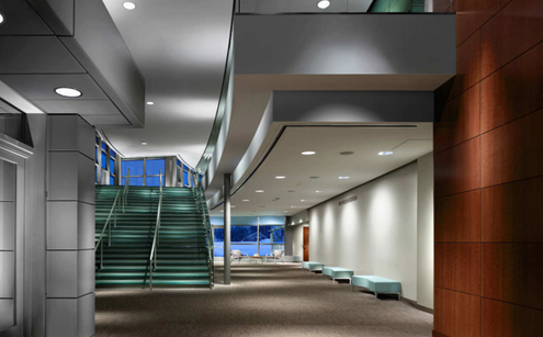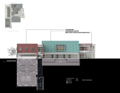 Su contexto corresponde al campus del Metropolitan Community College, con el cual está en armonía por el mismo uso de materiales de fachada como los ladrillos rojos y el vidrio que priman en el campus.